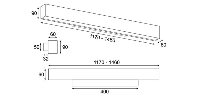 - Liniowa lampa ścienna z dystansem kinkiet, jednolita linia światła, długość 262 cm, salon kuchnia jadalnia korytarz biuro, LED 36W, kolor Biały, barwa światła Biała ciepła 3000K, materiał aluminium + tworzywo, nr kat. 6116D08102-3